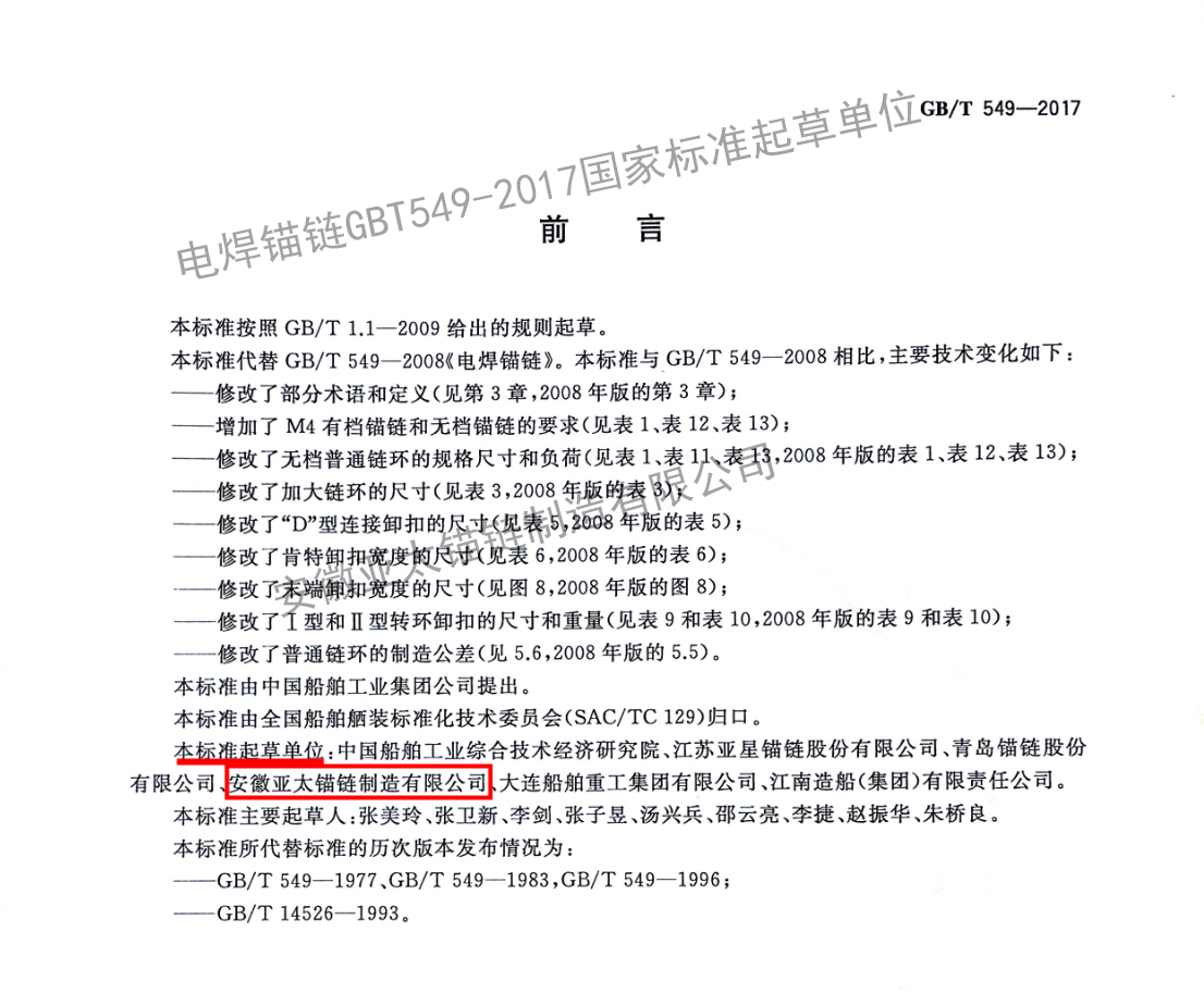 • 電焊錨鏈GBT549-2017國家標準起草單位